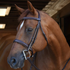- All hardware is stainless steel, with hook stud ends, and a roller buckle on the noseband.