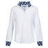 - The Ellie Child's Tech Show Shirt features a smooth stretch jersey front with quarter snap placket in classic ratcatcher styling with fun patterned cuffs and wrap collar.