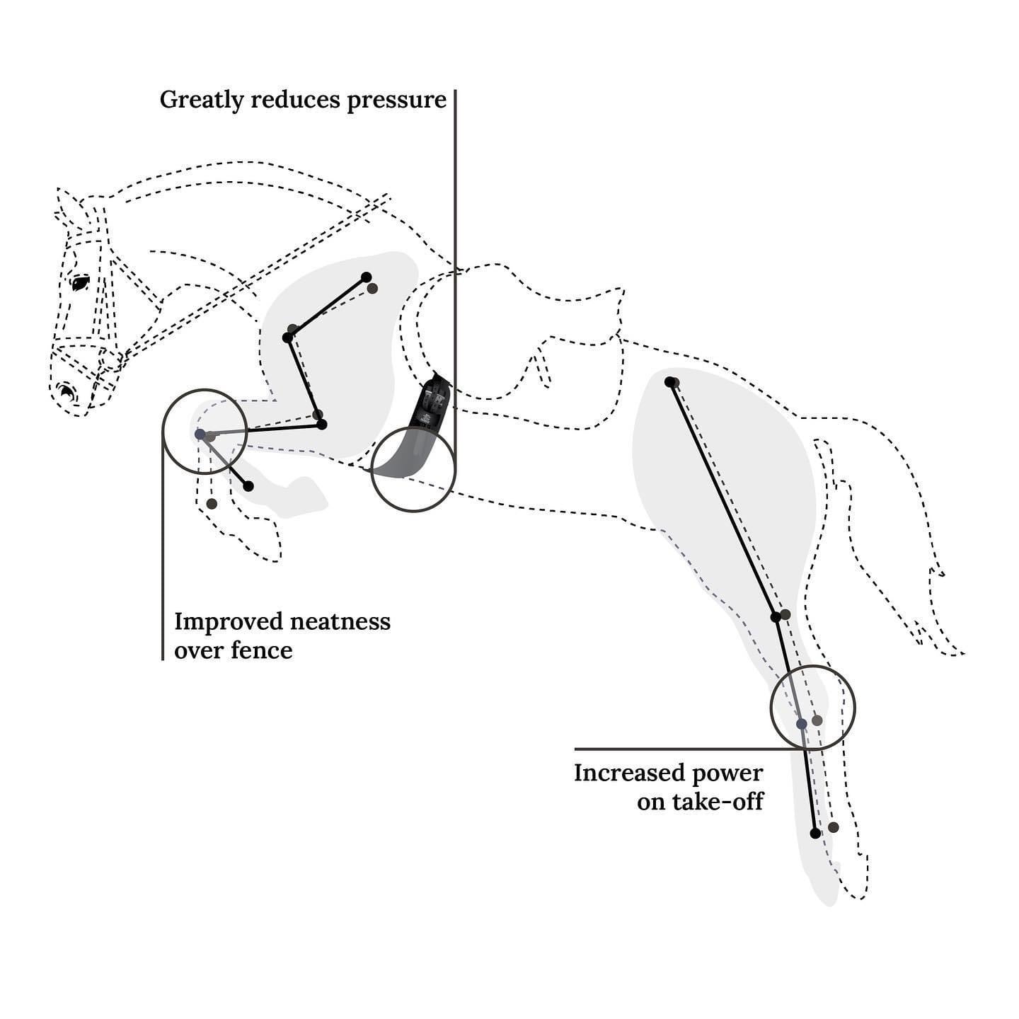 The Performance Girth has been proven to improve the horse's performance by dramatically reducing pressure (up to 82%), significantly increasing range of movement (up to 33% in forelimb protraction compared to the horse’s normal girth and eliminating gait asymmetry.