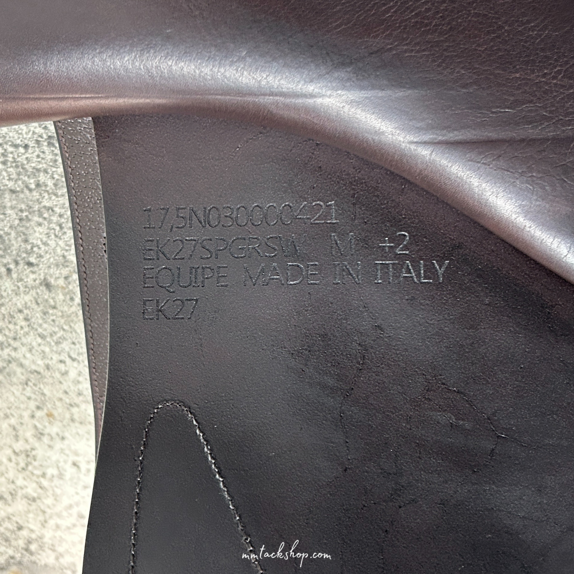 From the Gruppo Selleria Equipe website: "The EK-27 is a 27cm wide jumping saddle. This specific model has been designed to provide greater stability for riders who need a wider and more comfortable seat. The carbon tree and semi-deep seat combine functionality in a well-balanced design." Made in Italy
